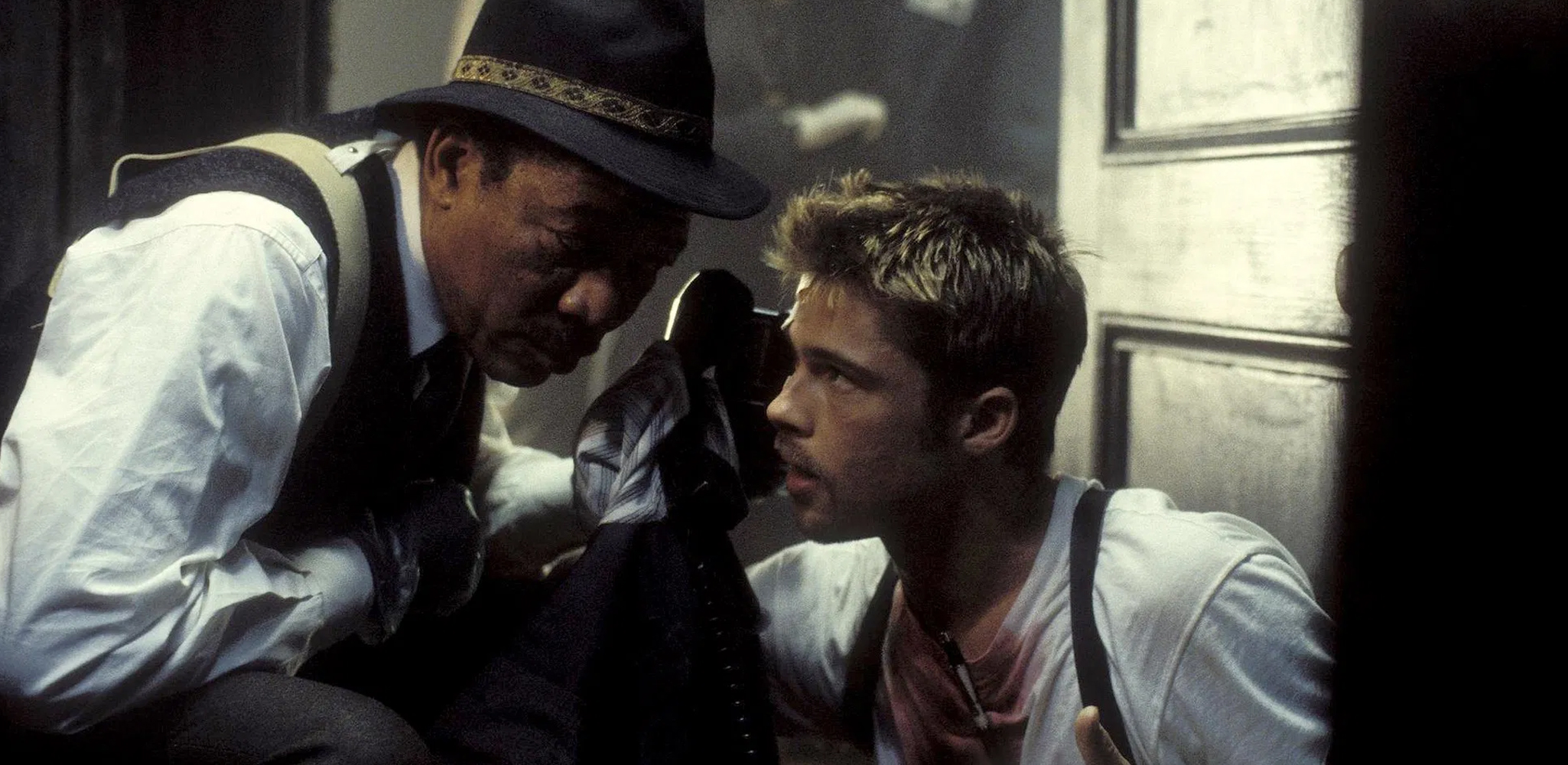 Taking place in a rainy nameless city, Se7en follows the story of two homicide detectives hunting a sadistic serial killer who chooses his victims according to the seven deadly sins. Brad Pitt stars as Detective David Mills, a hopeful but naive rookie new to the city, who finds himself partnered with veteran Detective William Somerset (Morgan Freeman) who's on his way out. Together they attempt to track the killer through the aftermath of his horrific crime scenes, all the while moving closer to a gruesome fate neither of them could have predicted.